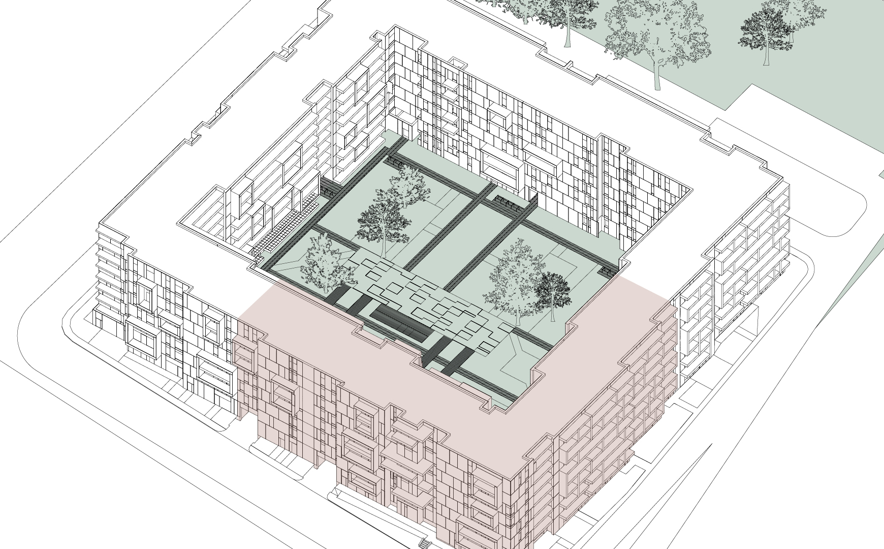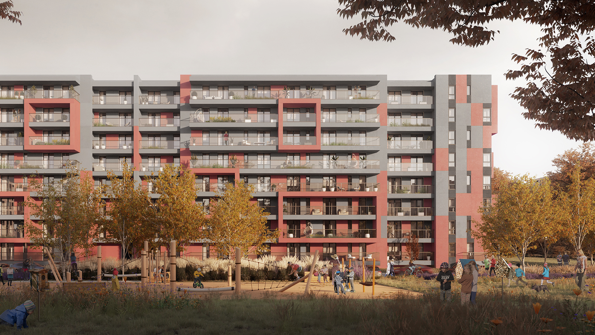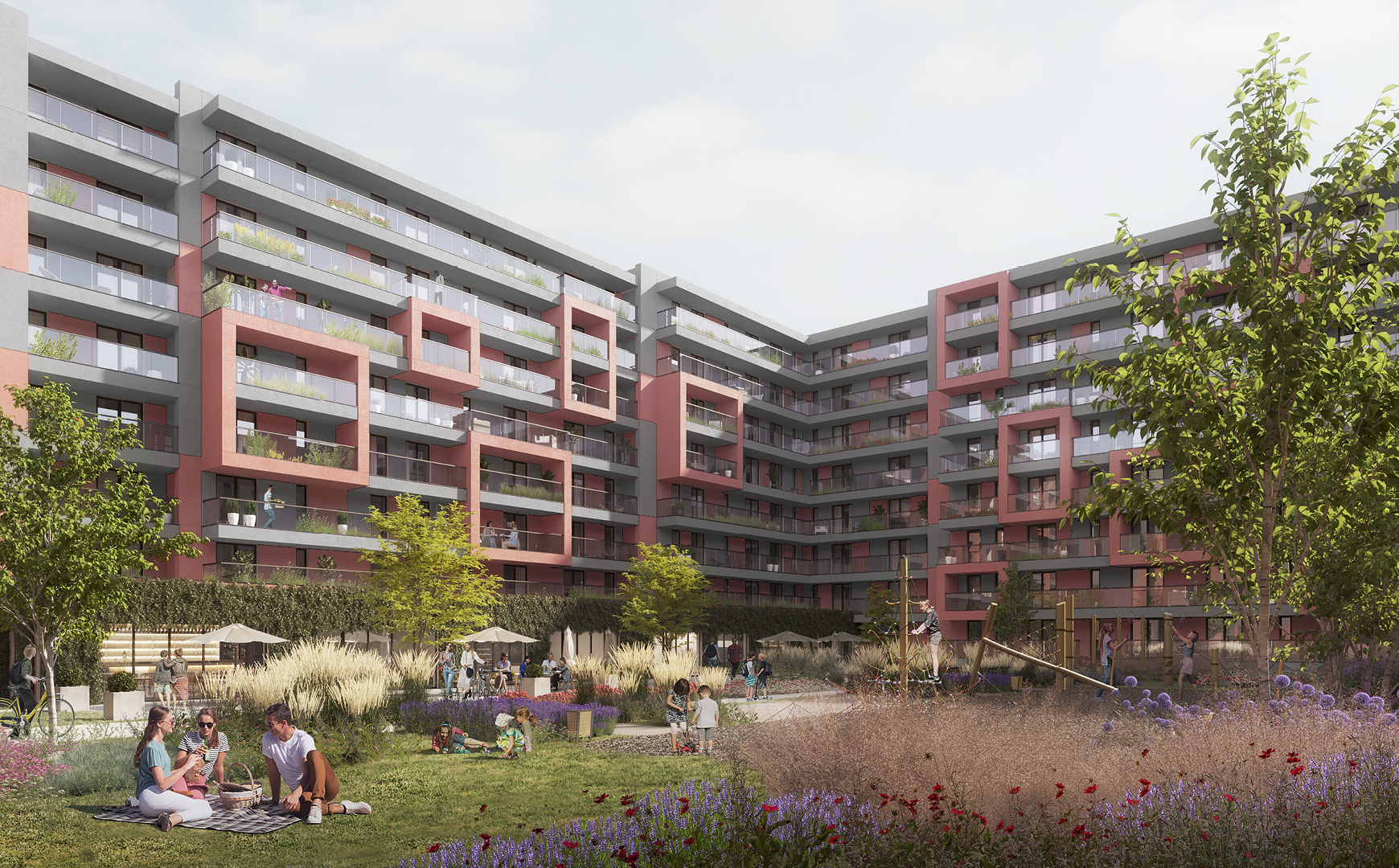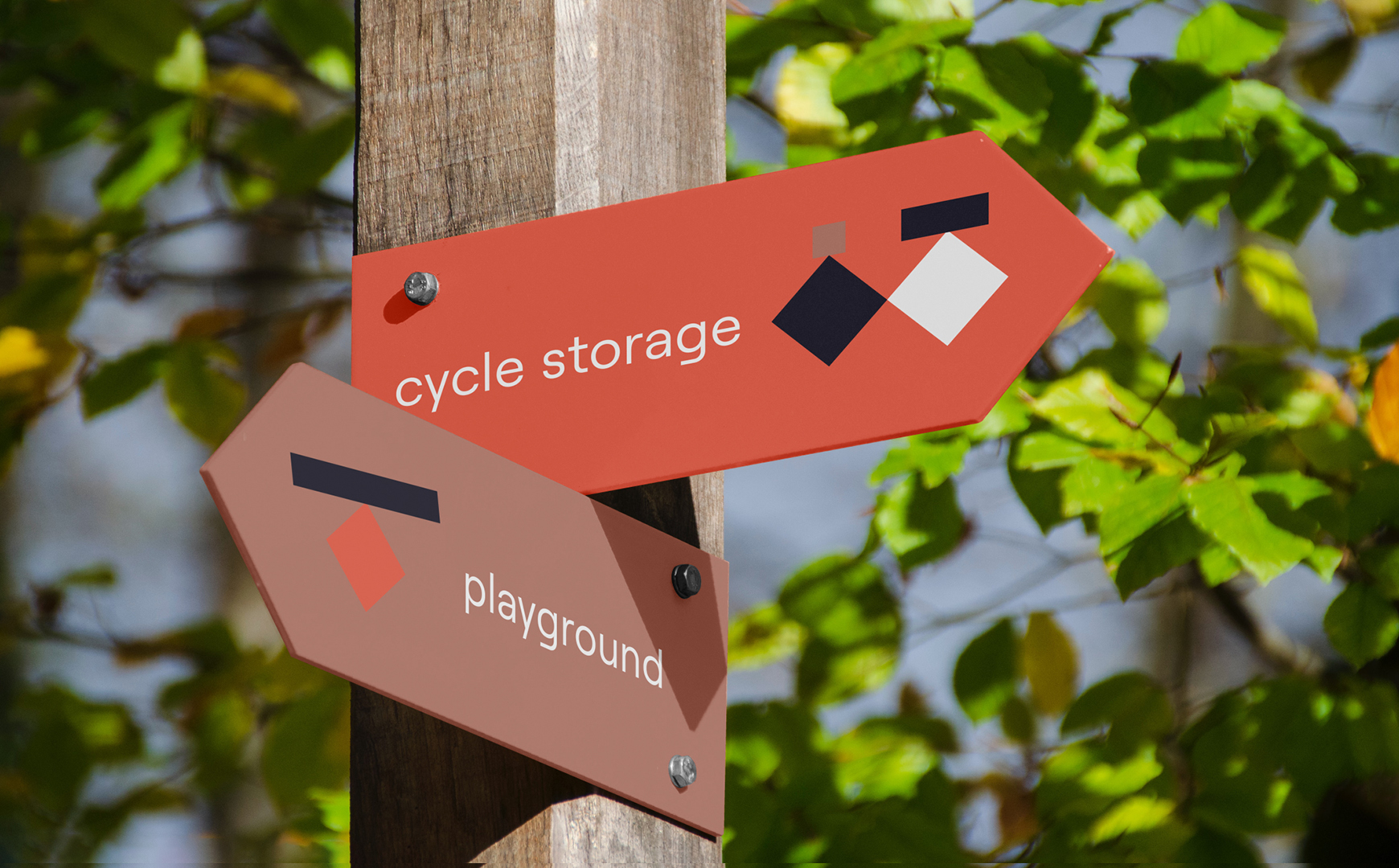 Vibrant branding for new city block with lots of services and acres of green areas