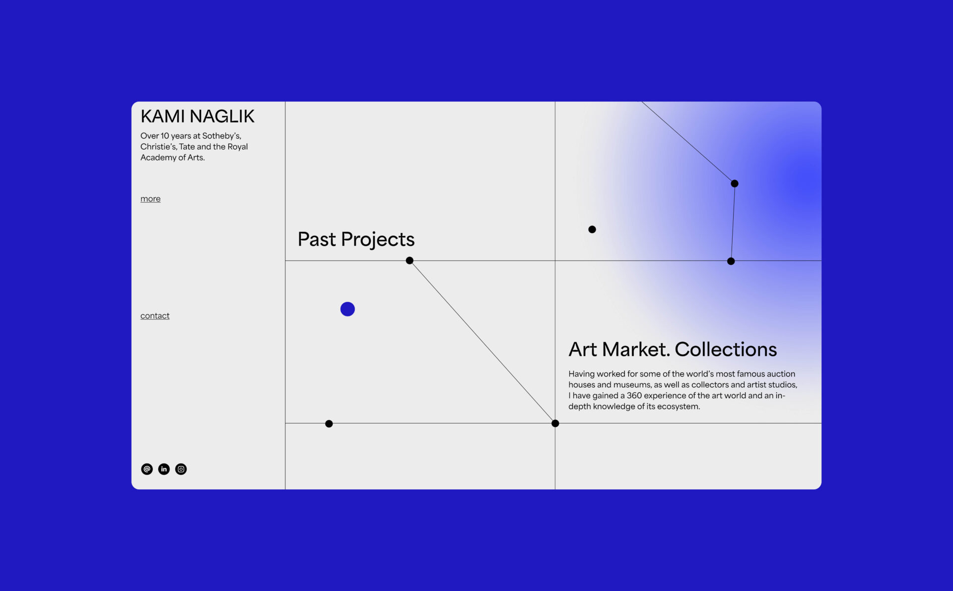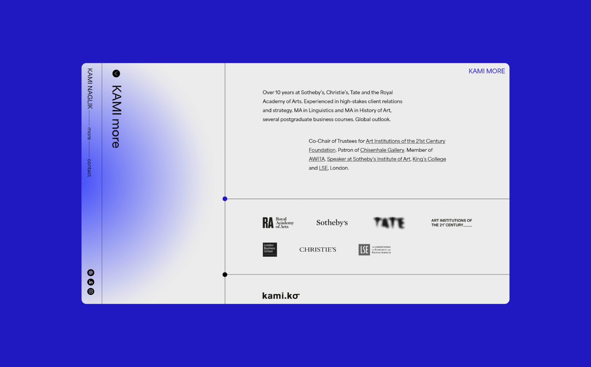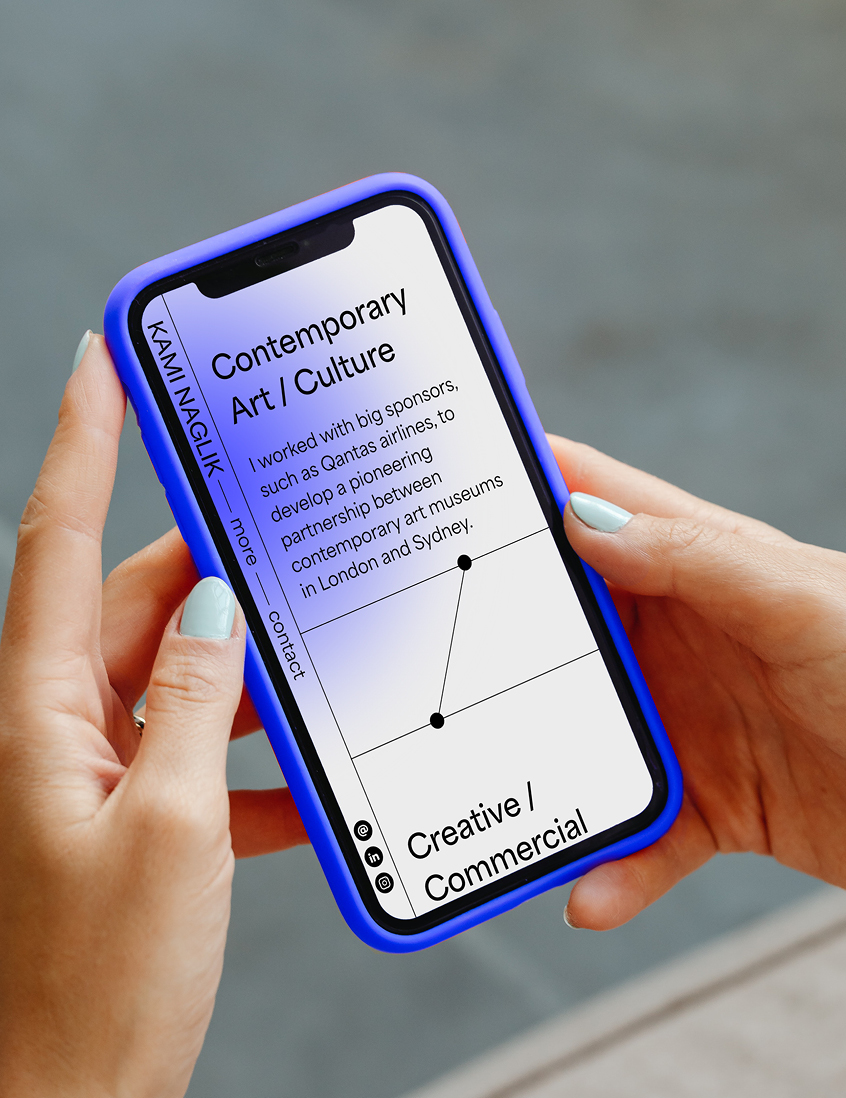 Zaprojektowaliśmy branding osobisty i stronę internetowej dla Kami Naglik, która zajmuje się sztuką i spędziła ponad 10 lat w londyńskich domach aukcyjnych Sotheby’s i Christie’s
