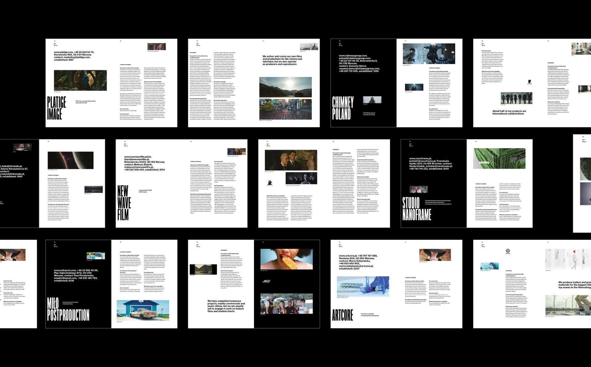 Projekt wnętrza katalogu wykorzystuje tę samą panoramiczną proporcję obrazów w każdej klatce