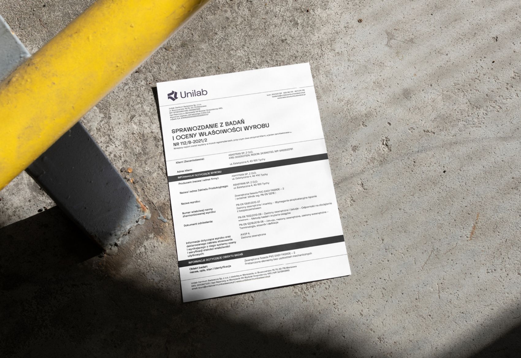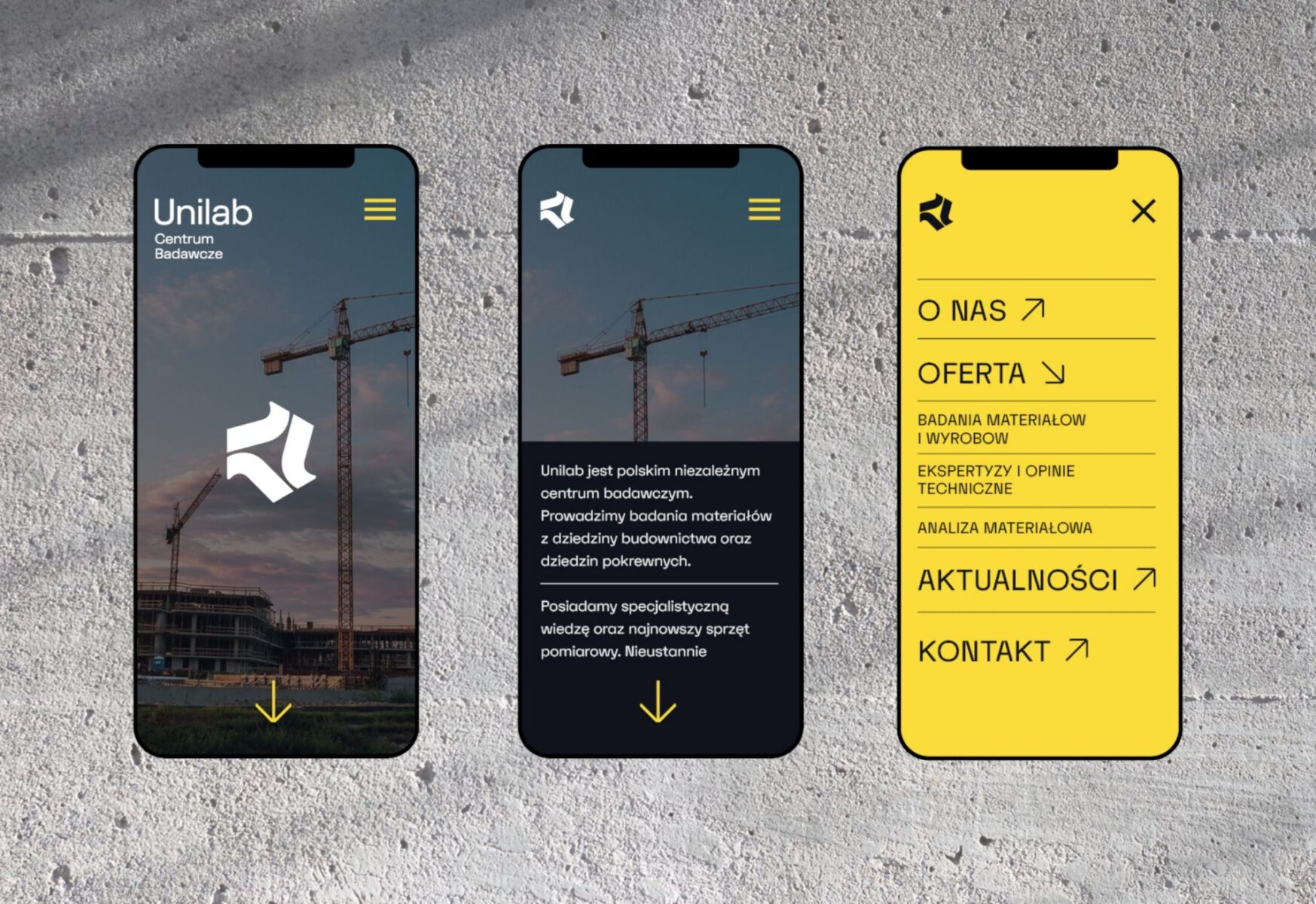Stworzyliśmy logo oraz oprawę graficzną, która jest mocna i prosta. Zdecydowana forma logo łączy się z branżą budowlaną, dla której Unilab wykonuje najwięcej badań. Zaprojektowaliśmy stronę www, w której dominują duże zdjęcia i zdecydowany kolor